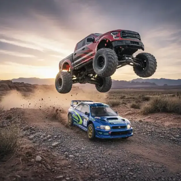 Dual tire sets included: grip tires + drift tires with quick-change screw design